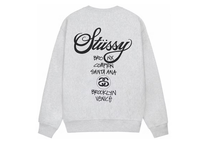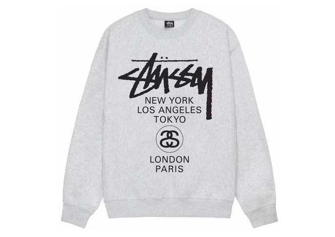 Stussy World Tour Crew Sweatshirt Grey (Ash Heather)