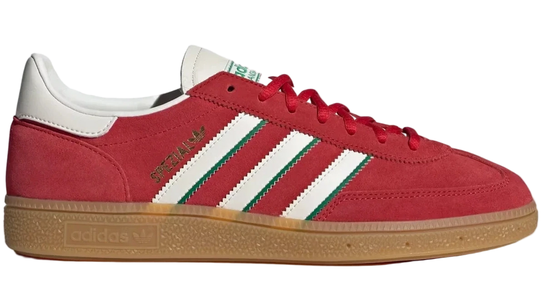 Make a statement with the Handball Spezial Better Scarlet Green, combining three stripes legacy with...