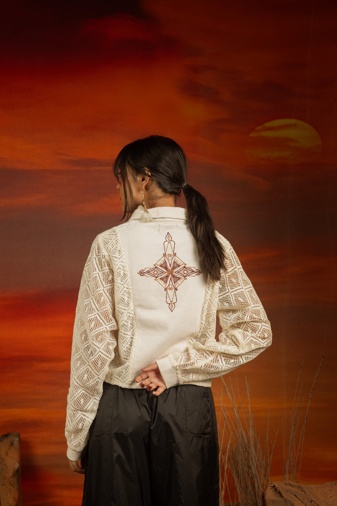 This top features a grounded autumn-weight front panel contrasted by breathable Croscia sleeves that shift...