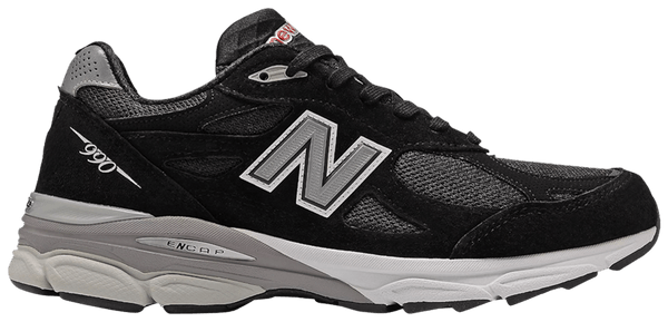 The New Balance 990v3 Made in USA ‘Black’ showcases traditional mesh and pigskin suede construction on the lifestyle runner originally released in 2012. The sneaker’s monochrome black finish is disrupted by reflective grey accents on the ‘N’ logo and a synthetic leather heel tab inscribed with ‘Made in USA’ branding. Atop the tongue, ‘New Balance’ is embossed in contrast red lettering. Lightweight cushioning comes courtesy of an ENCAP midsole, comprising a soft foam core and a durable polyurethane carrier.