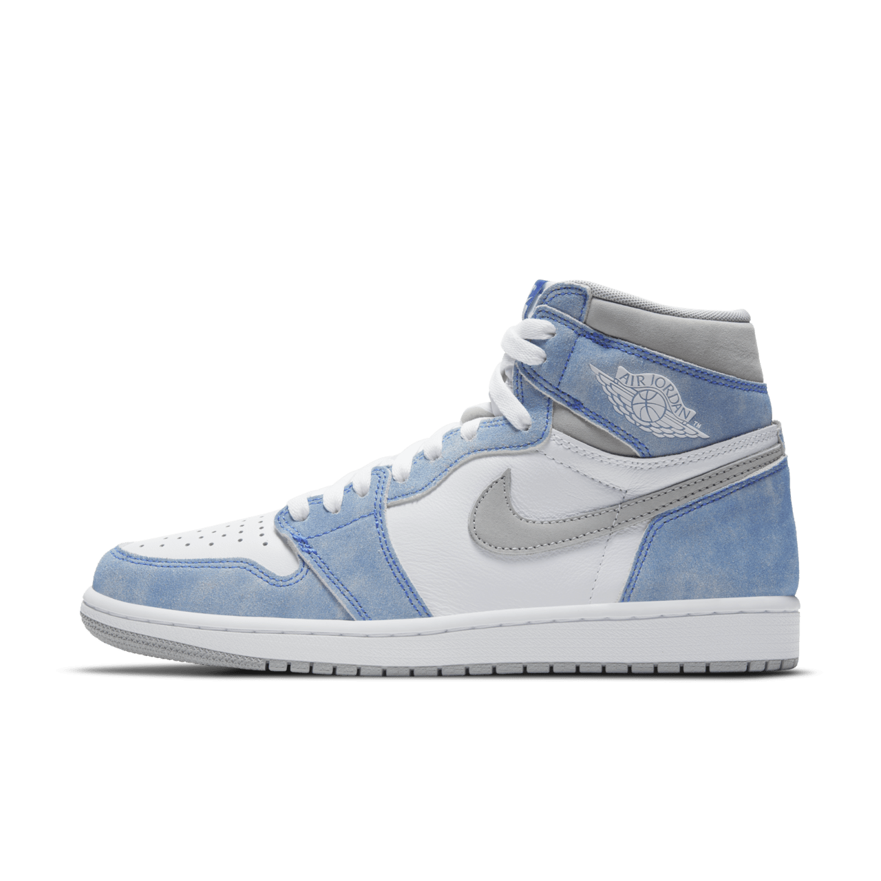 Experience a fresh take on a classic with the Air Jordan 1 Retro High OG "Hyper Royal." This standout sneaker features a weathered, vintage-inspired aesthetic with faded Hyper Royal suede overlays that create a unique, worn-in look right out of the box.