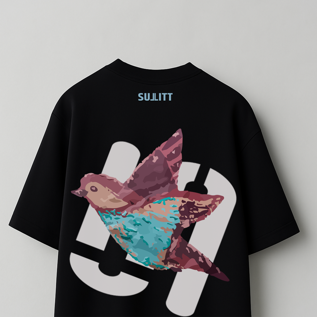 Crafted from 100% cotton French terry fabric, this oversized t-shirt offers a relaxed fit and superior comfort. With a fabric weight of 240 GSM, it’s both durable and soft. The puff print and high-definition detailing enhance the sparrow design, creating a visually captivating and textured look.