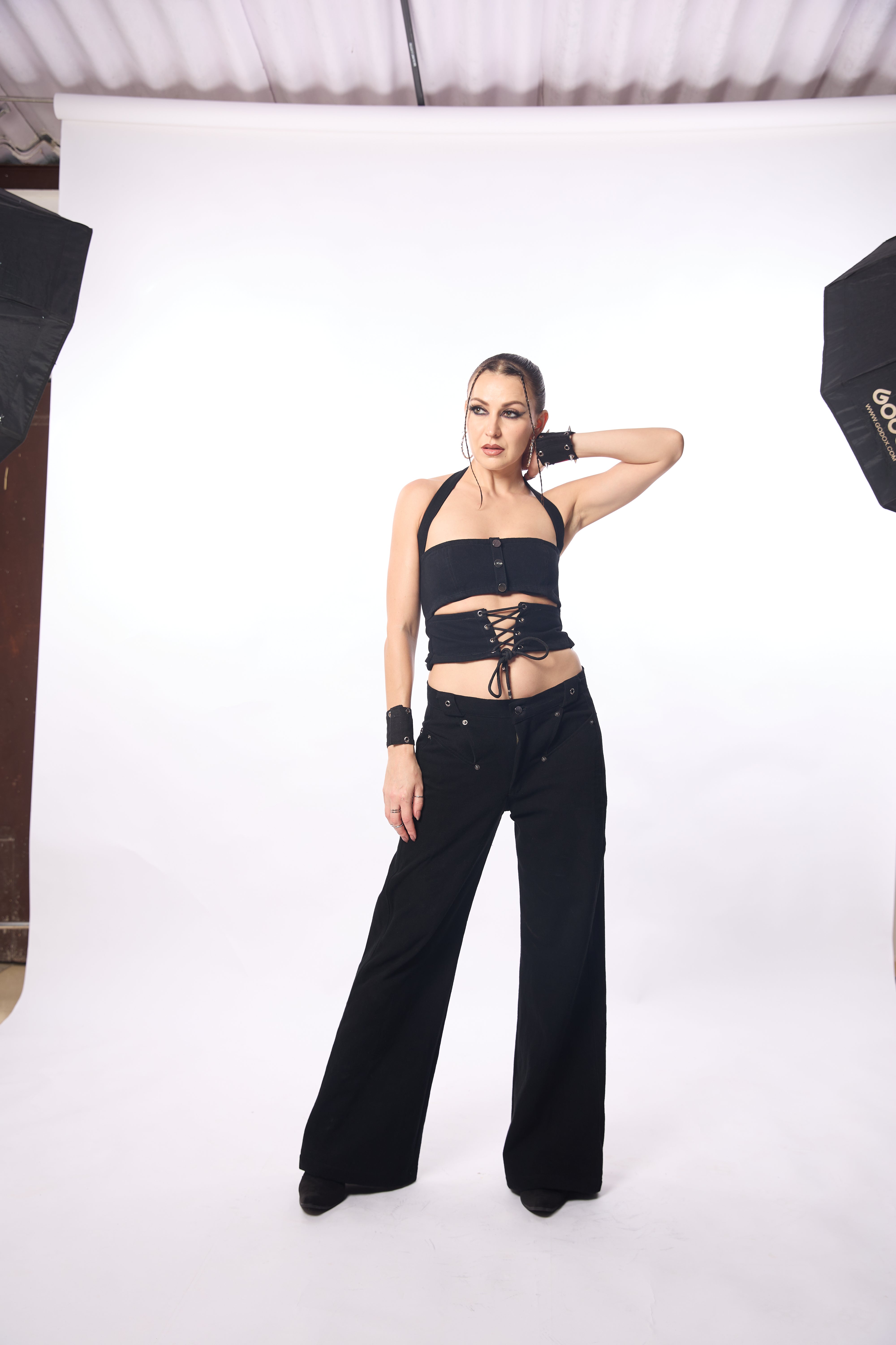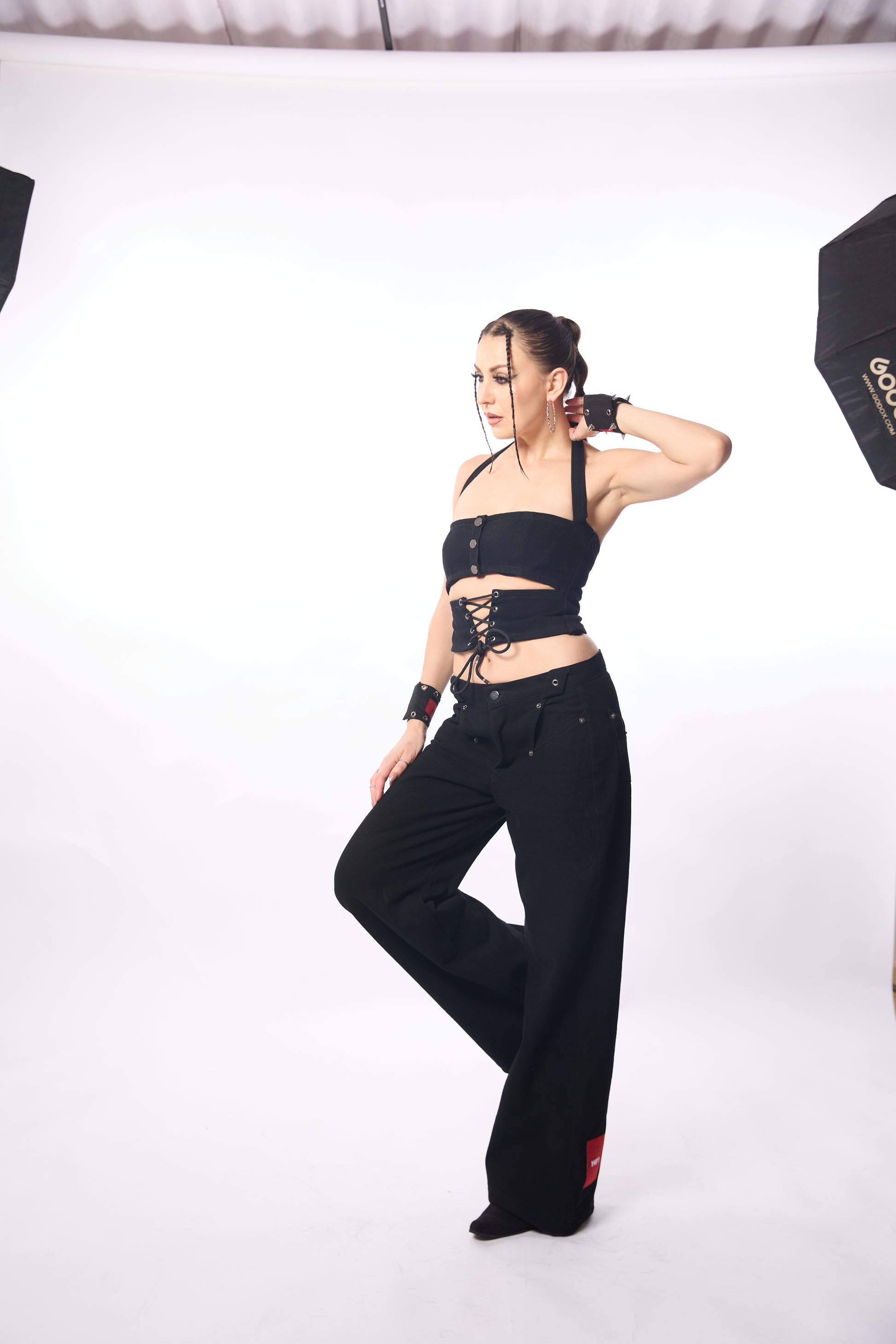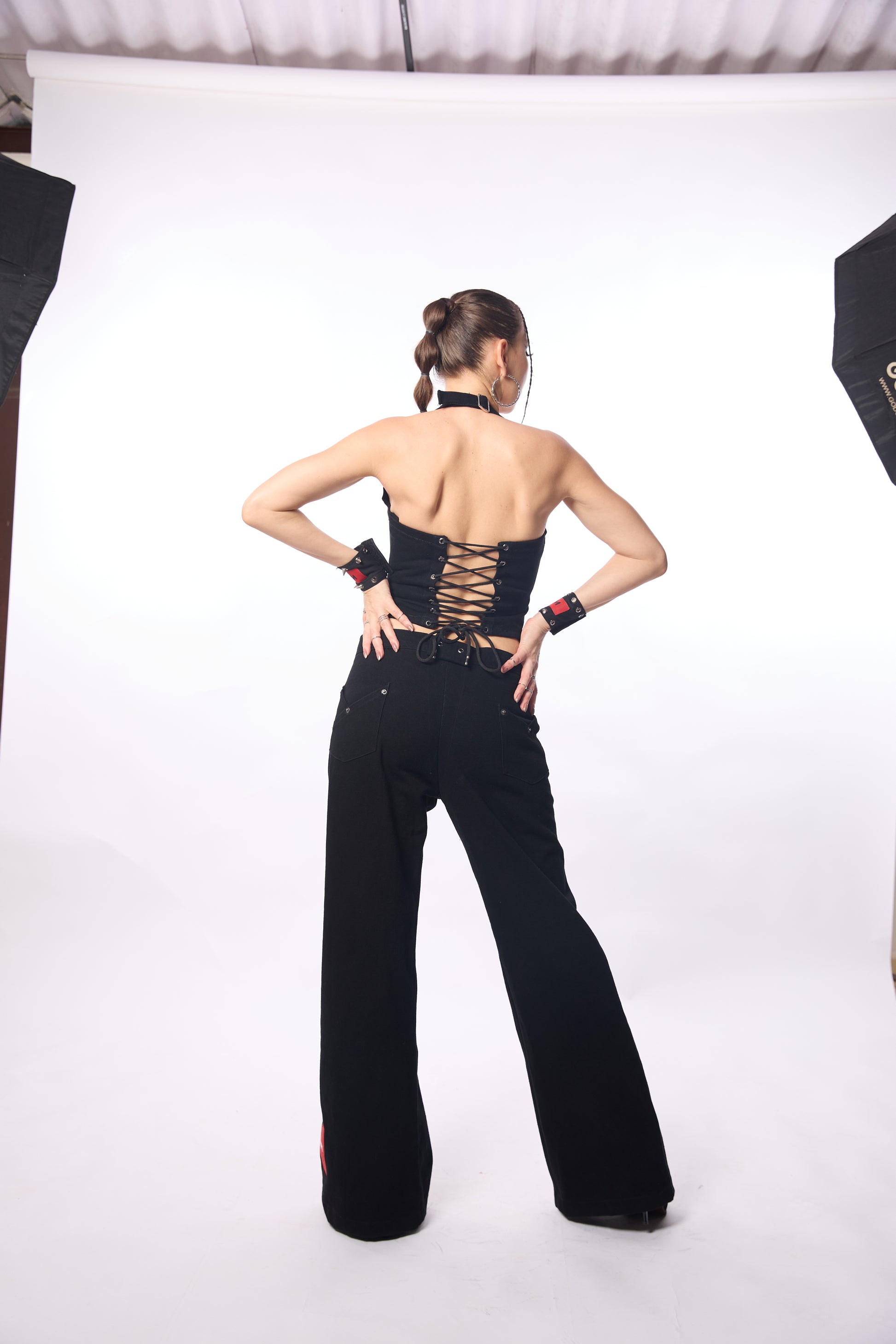 Cinch up corset top: The halter neckline and semi-corset bodice offer a flattering silhouette, while adjustable drawstrings at the back ensure the perfect fit and add a touch of playful elegance.