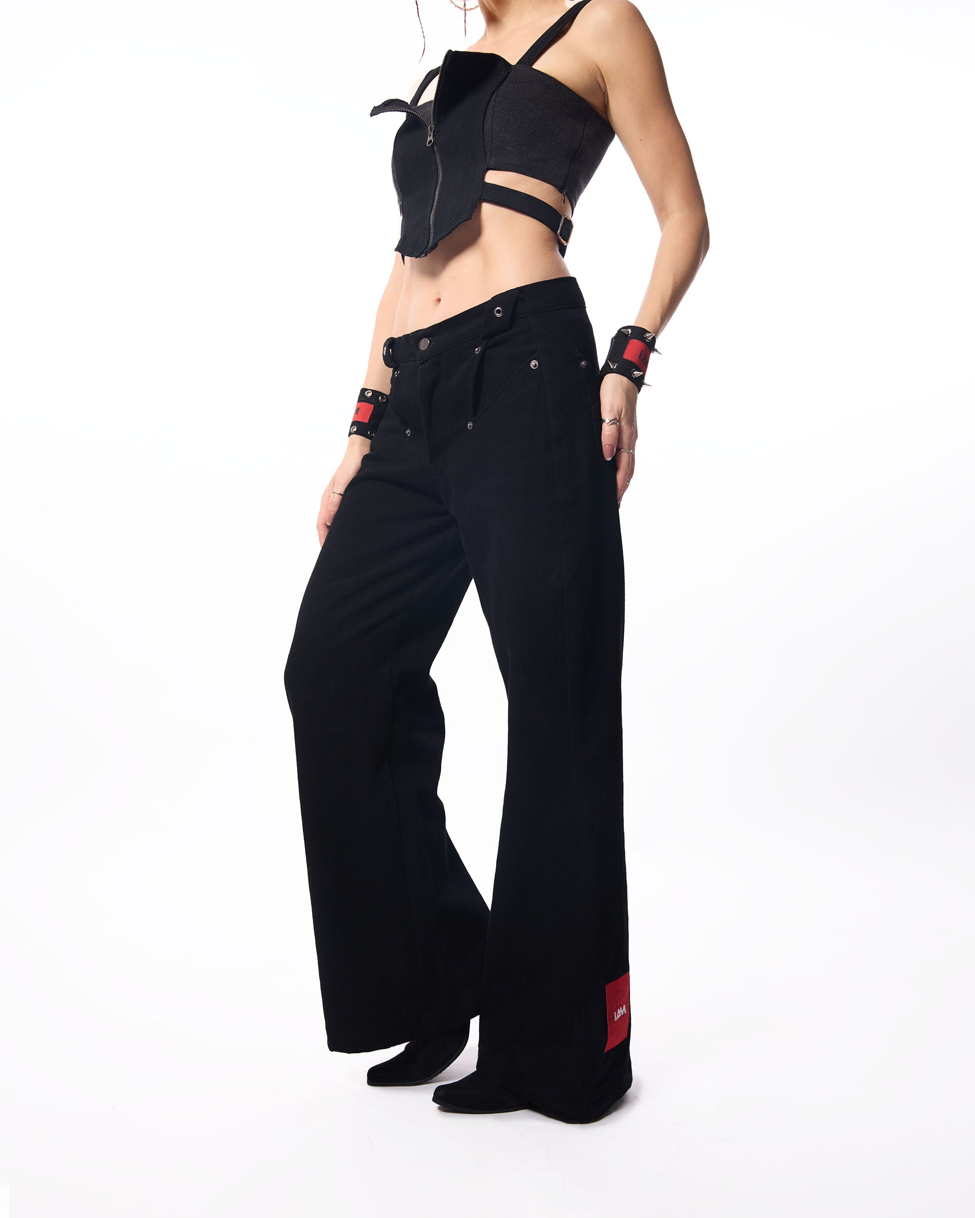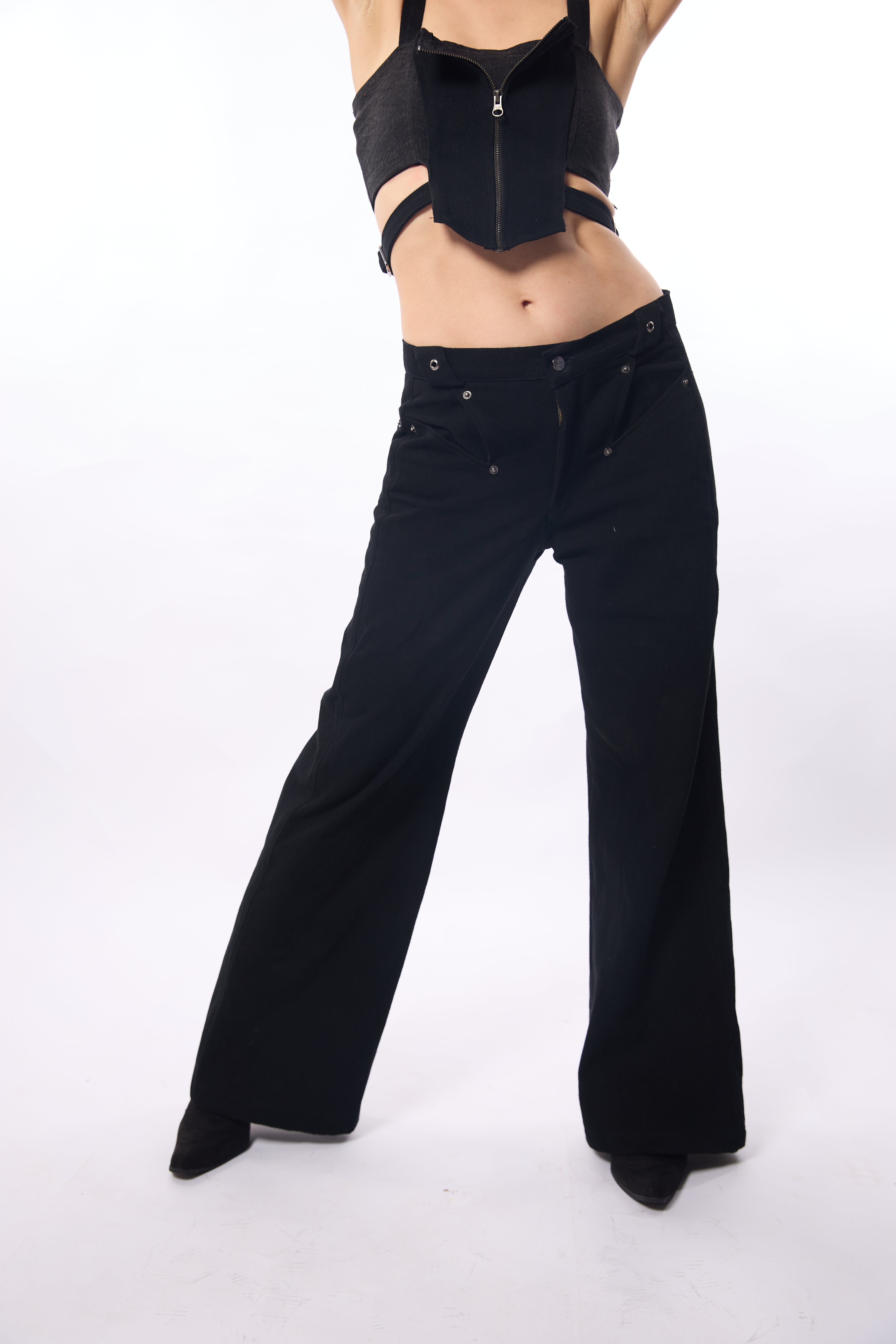 Effortless Bootcut Denim: Revamp your casual wardrobe with our Black Denim Low Waist Bootcut Jeans. This jeans feature a relaxed, baggy fit that offers both ease of movement and a trendy silhouette.