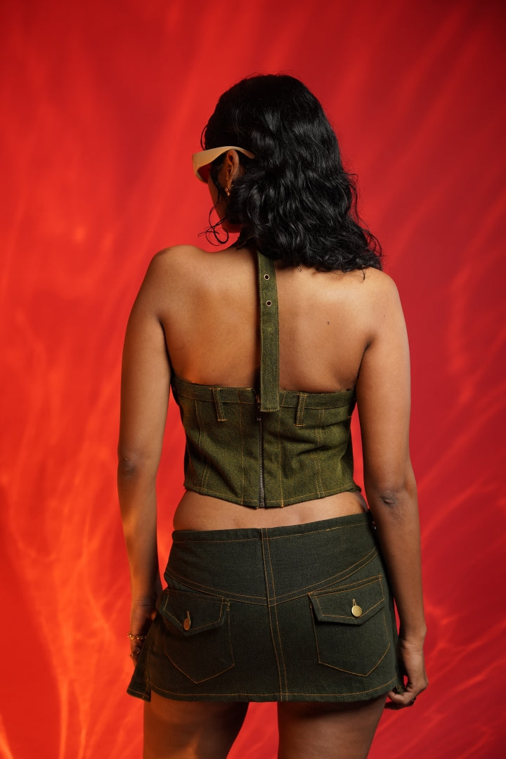 Introducing our flap detail denim micro skirt, designed to make a statement. The unique cut flaps at the front add distinctive character, while a huge chic buckle at the waist, complete with eyelets, enhances its stylish appeal. Featuring contrast stitching, waist loops, and practical back pockets, this skirt is a must-have piece for any occasion.