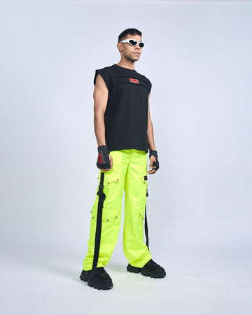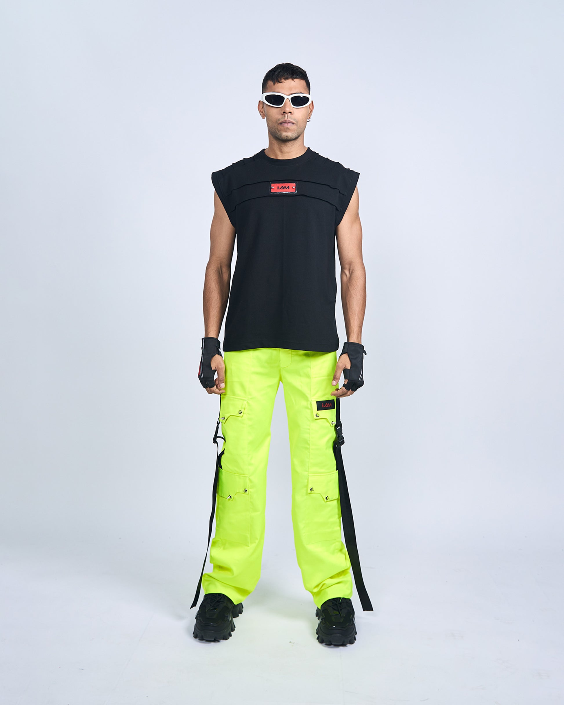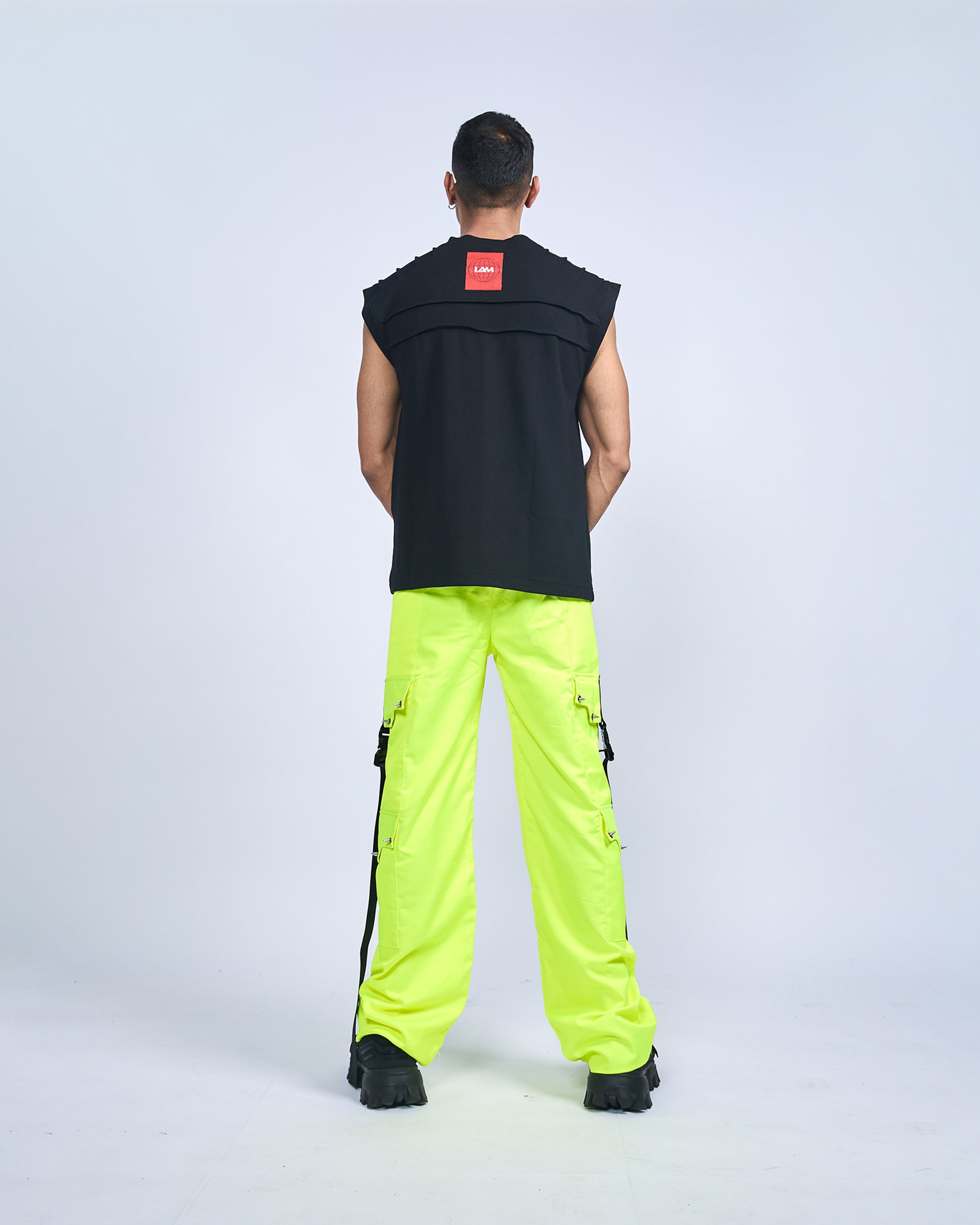 Introducing the Gladiator Top: a unique raglan t-shirt with sleek cutouts on the shoulders and dual panels on the chest. This sleeveless design combines bold style and comfort, perfect for a modern, edgy look that stands out in any party.