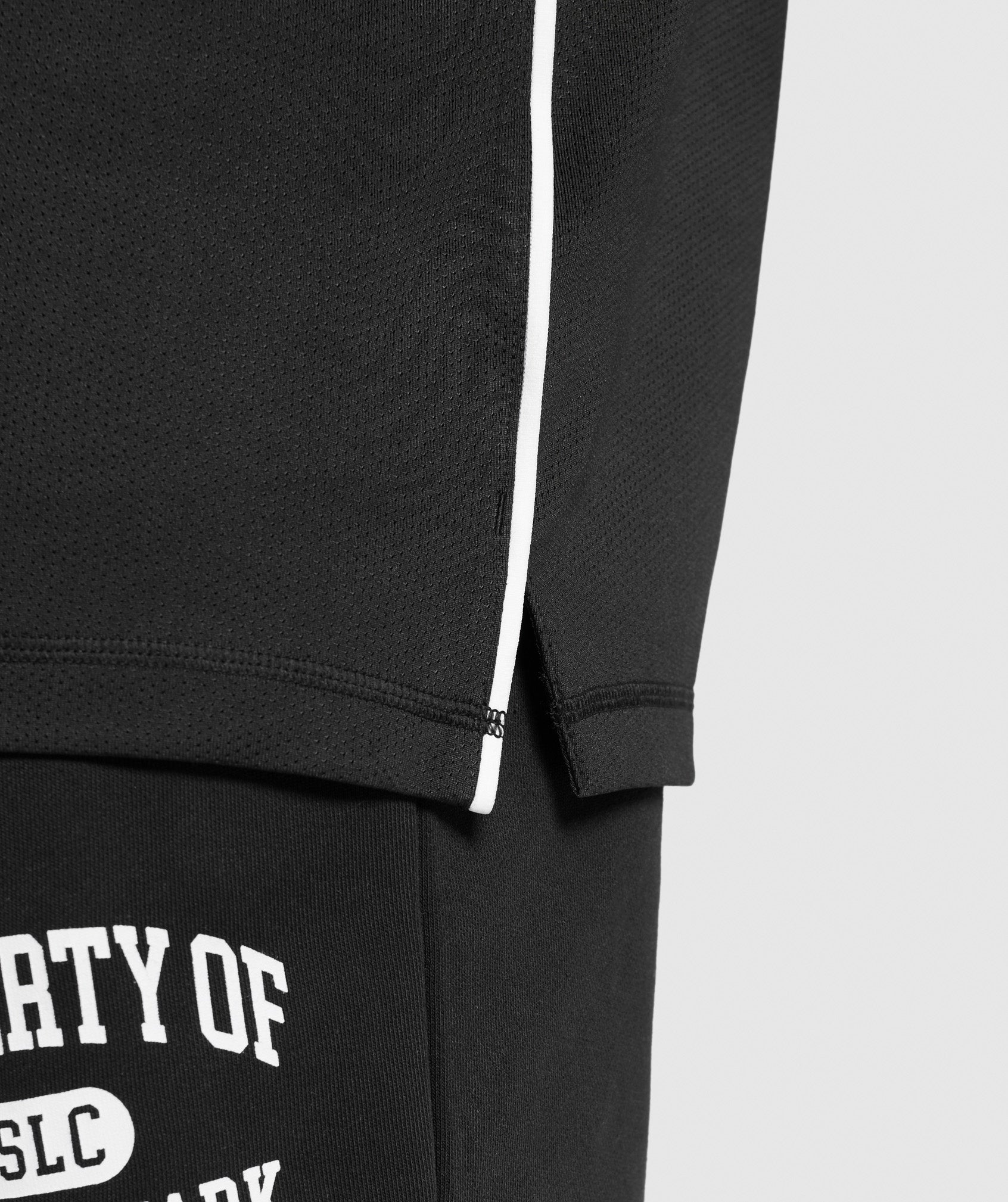 Gymshark Mesh Tank in classic black featuring lightweight mesh fabric for superior ventilation. Performance sleeveless shirt designed for intense gym sessions with breathable construction and moisture-wicking technology. Perfect for weightlifting and cardio workouts.