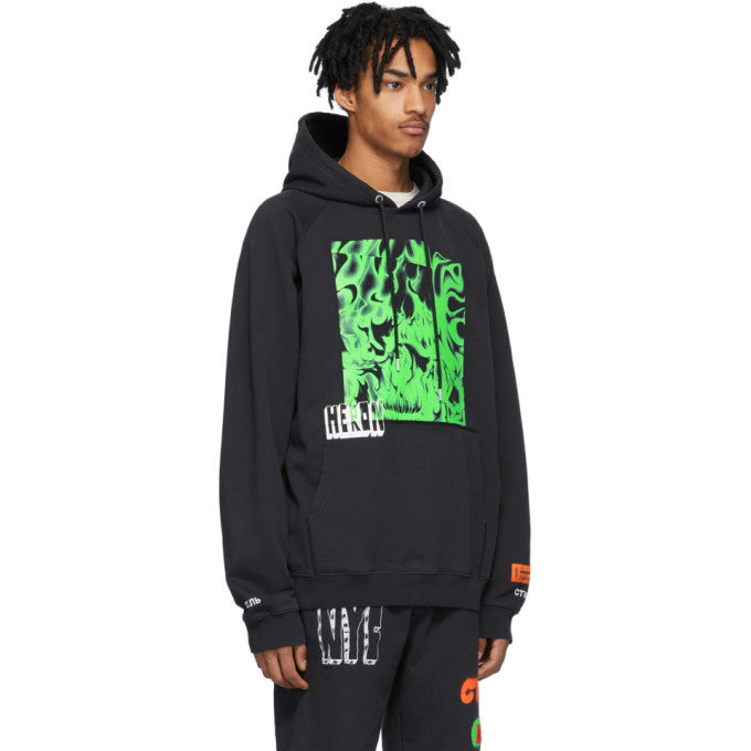 The Heron Preston Black Box Skull Hoodie merges gothic edge with high-fashion streetwear. Crafted from premium heavyweight cotton, this black hoodie features Heron Preston’s signature box logo alongside a bold skull graphic, creating a powerful visual statement. Ribbed trims, a front kangaroo pocket, and adjustable hood add both comfort and structure. Finished with the iconic orange label at the sleeve, this piece channels urban attitude and designer craftsmanship—ideal for those who want to stand out without saying a word.