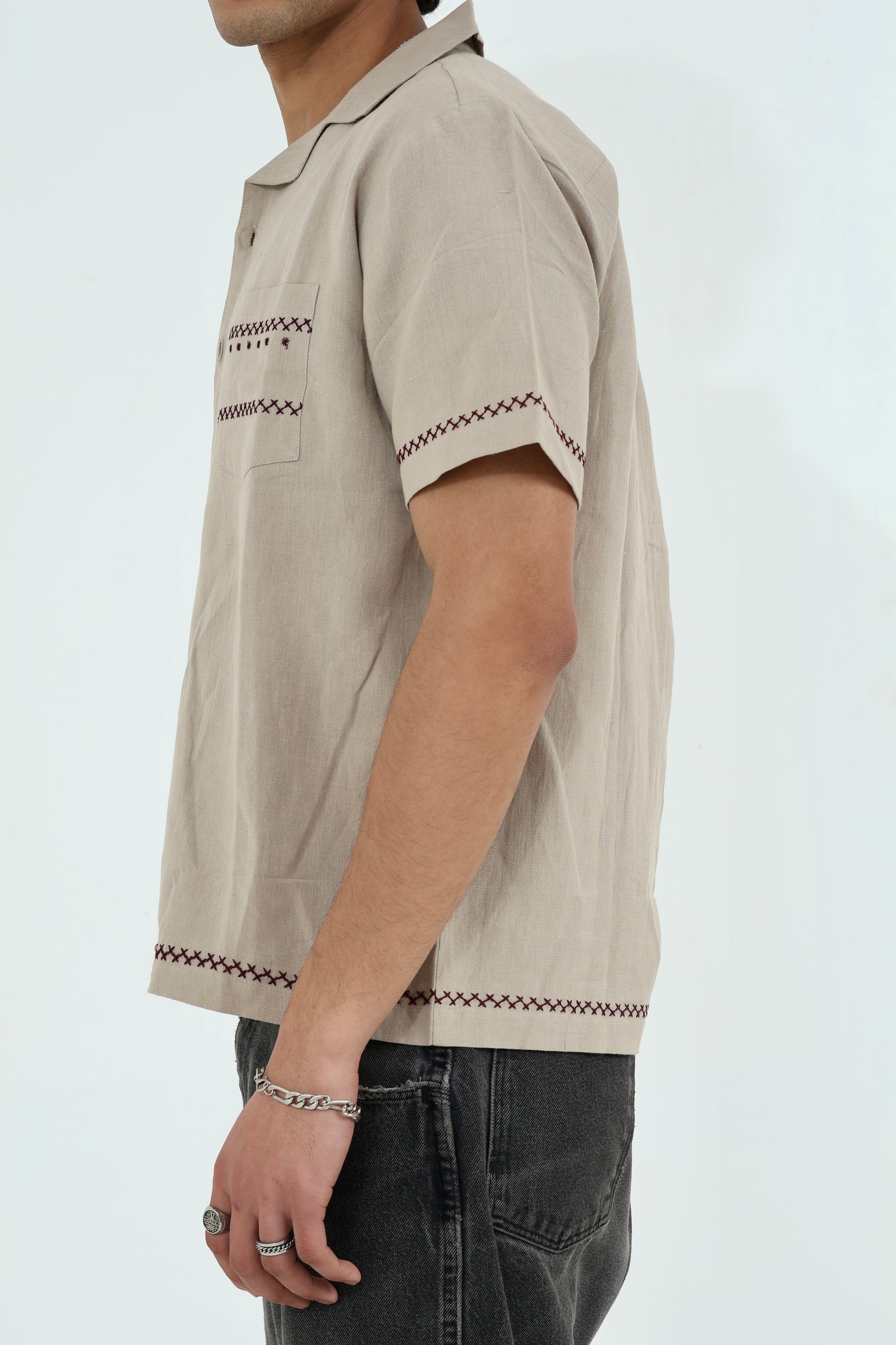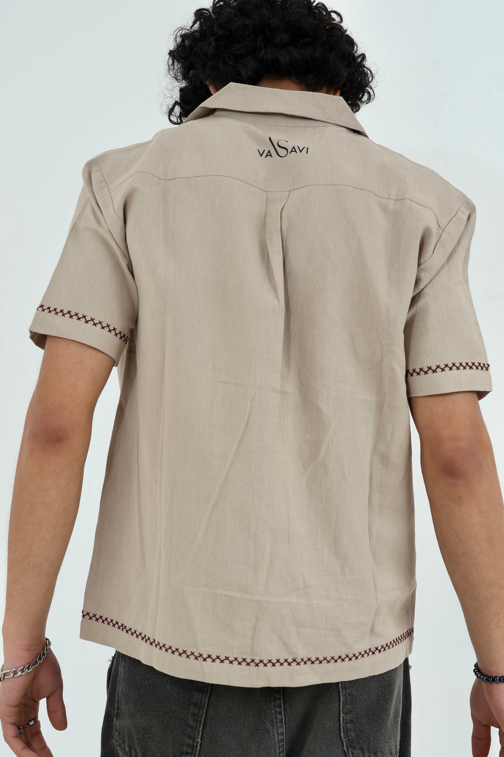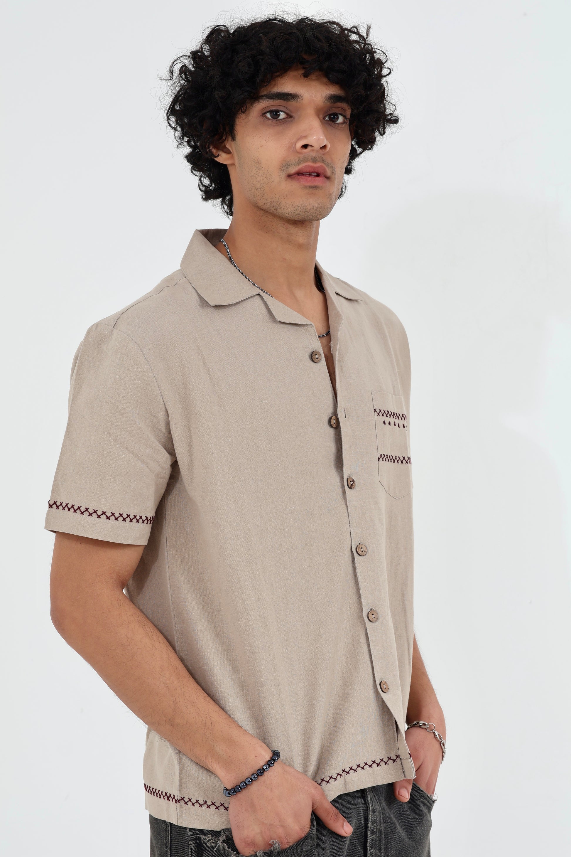 The khadi shirt with herringbone embroidery brings a bold twist to traditional craftsmanship, merging timeless design with modern flair. With its relaxed fit and intricate details, it challenges the norm and celebrates newness. Break the norm, wear the change—this shirt is a statement of refined rebellion in fashion.