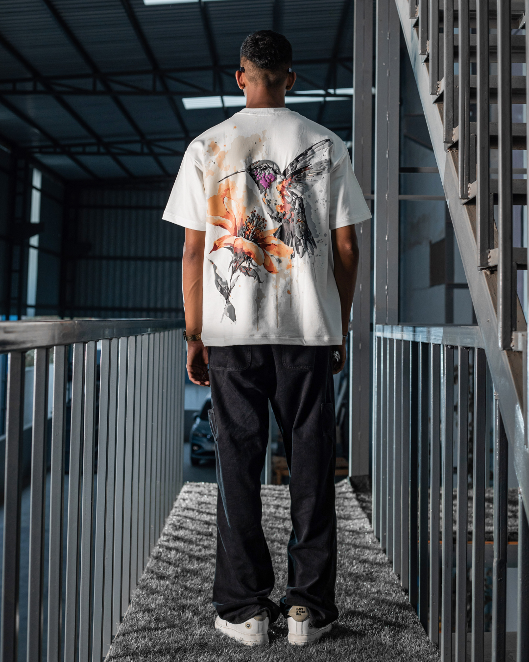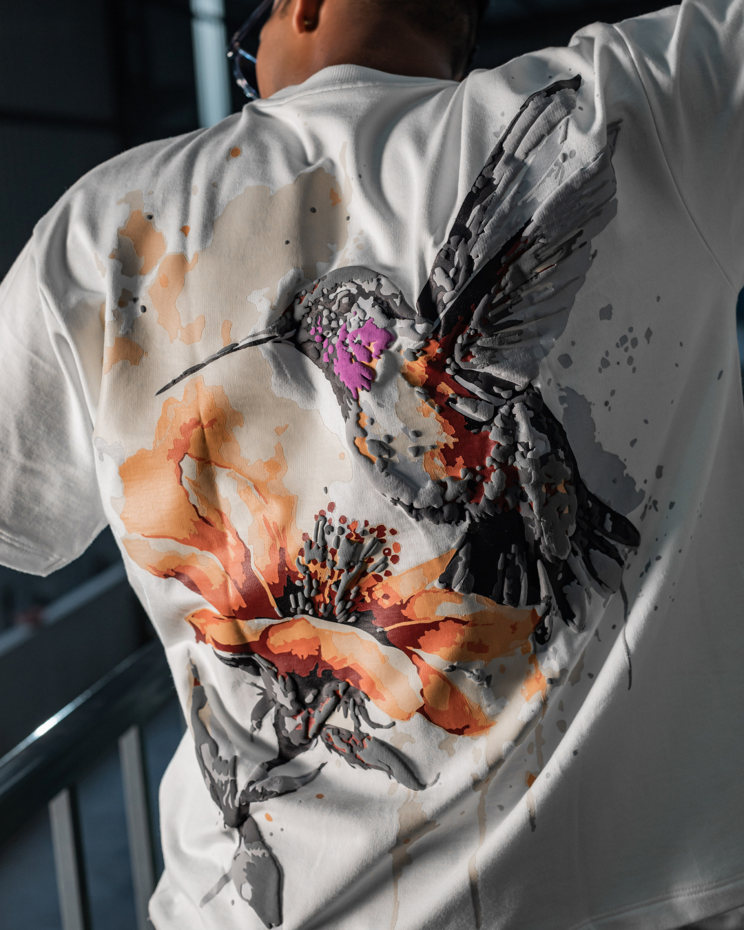 KISS OF NECTAR WHITE TEE captures a fleeting moment of hunger, beauty, and instinct. Featuring a bold puff backprint of a bird caught mid-hover, reaching for the heart of a flower, this tee blends softness with symbolism. Printed on premium 240 GSM French Terry Cotton, it delivers a clean, structured fit that feels as fresh as it looks. It’s not just style — it’s nature’s quiet obsession, worn loud.