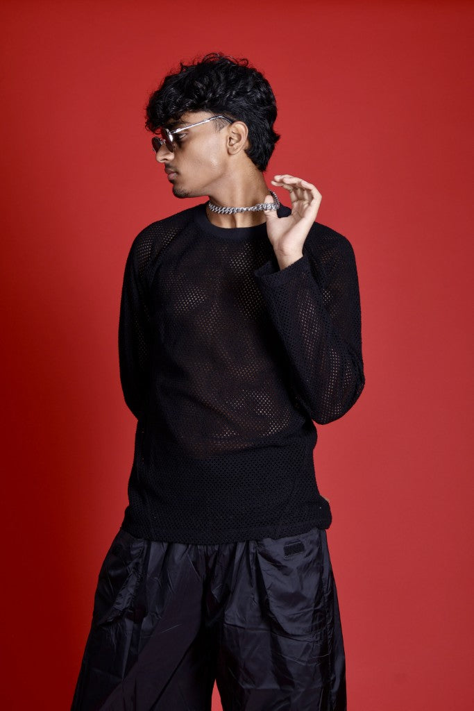 This raglan sleeve t-shirt, crafted from premium Crocia fabric, channels a techno-infused design with its sleek, minimalist silhouette. The relaxed fit and contemporary styling offer a perfect fusion of comfort and futuristic elegance.