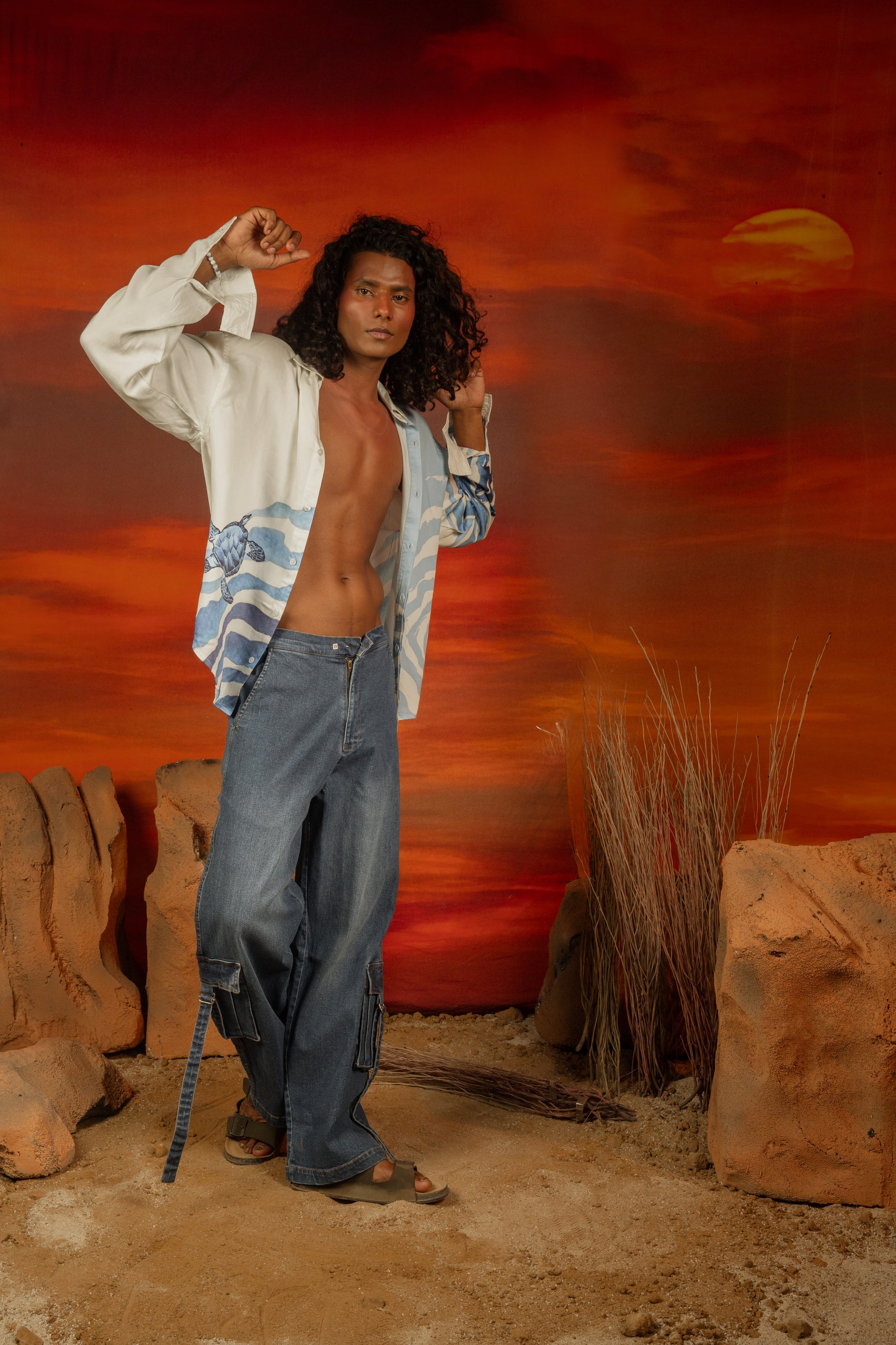 All-over fluid print reflecting Goa’s organic movement and energy.