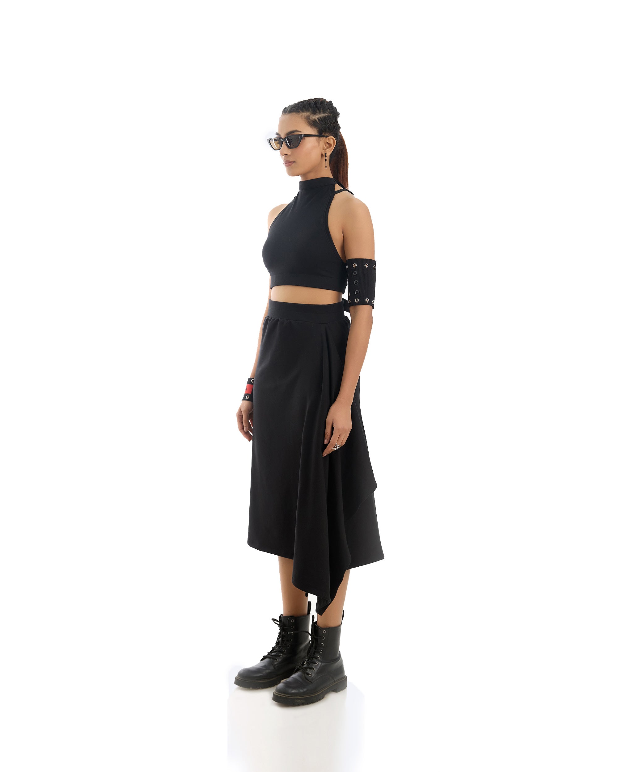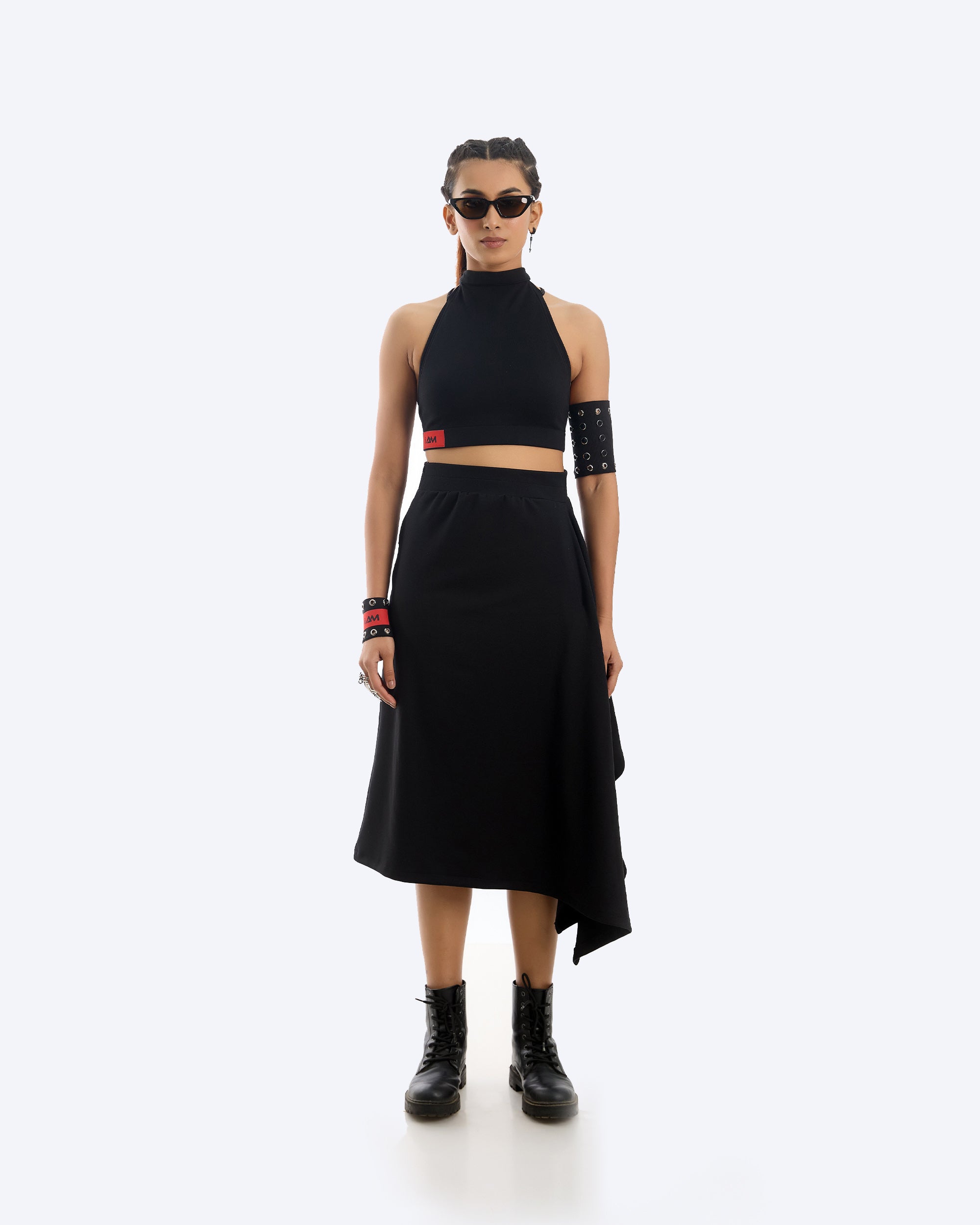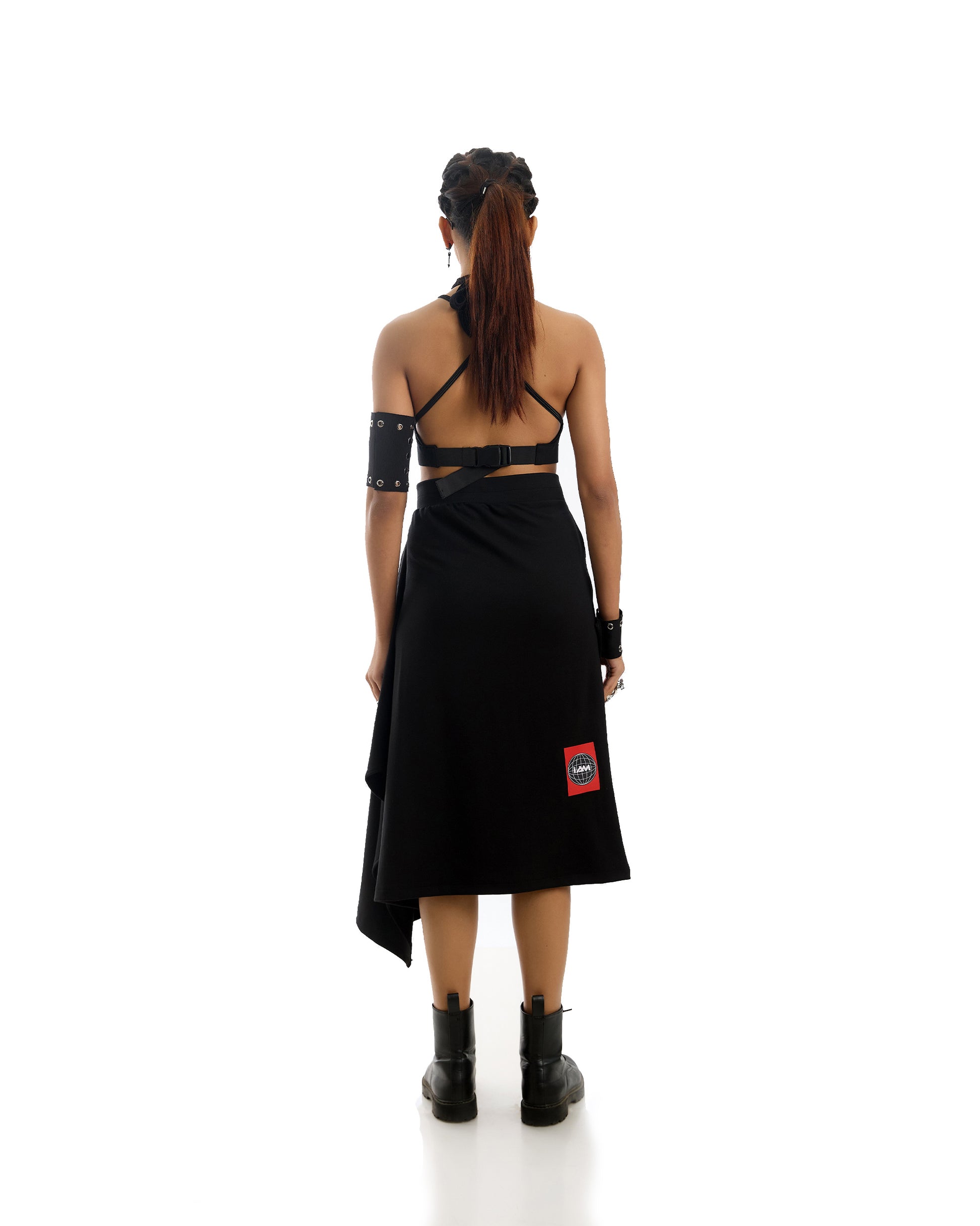 Introducing our Midnight Rhythm Wrap Skirt, a futuristic fusion of style and function. Crafted with precision in mind, this black skirt seamlessly integrates tech-inspired design elements. The wrap-up feature adds versatility, allowing you to adjust the fit with ease. The side slit enhances mobility, blending urban chic with modern practicality.