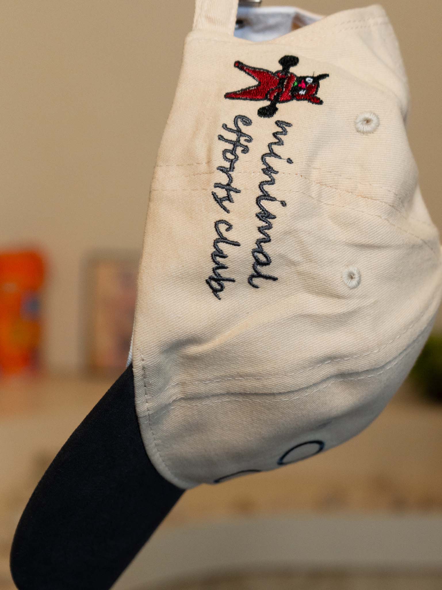 "The Minimal Effort Club Cap is Ore Ofe’s tribute to every rebel who knows that sometimes surviving the week is workout enough. Built from breathable cotton and finished with a cheeky embroidered dog casually lifting weights, it’s streetwear with a wink—because nothing says “I did my best” like admitting you didn’t.