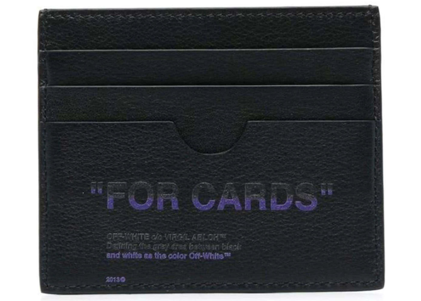 Off‑White’s black and purple card case features signature quote graphics on sturdy leather. Slim, stylish, and distinctly avant-garde—ideal for those who appreciate edgy fashion everyday.