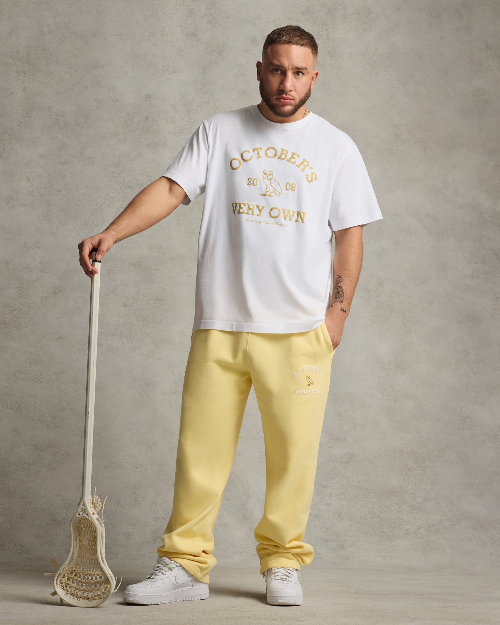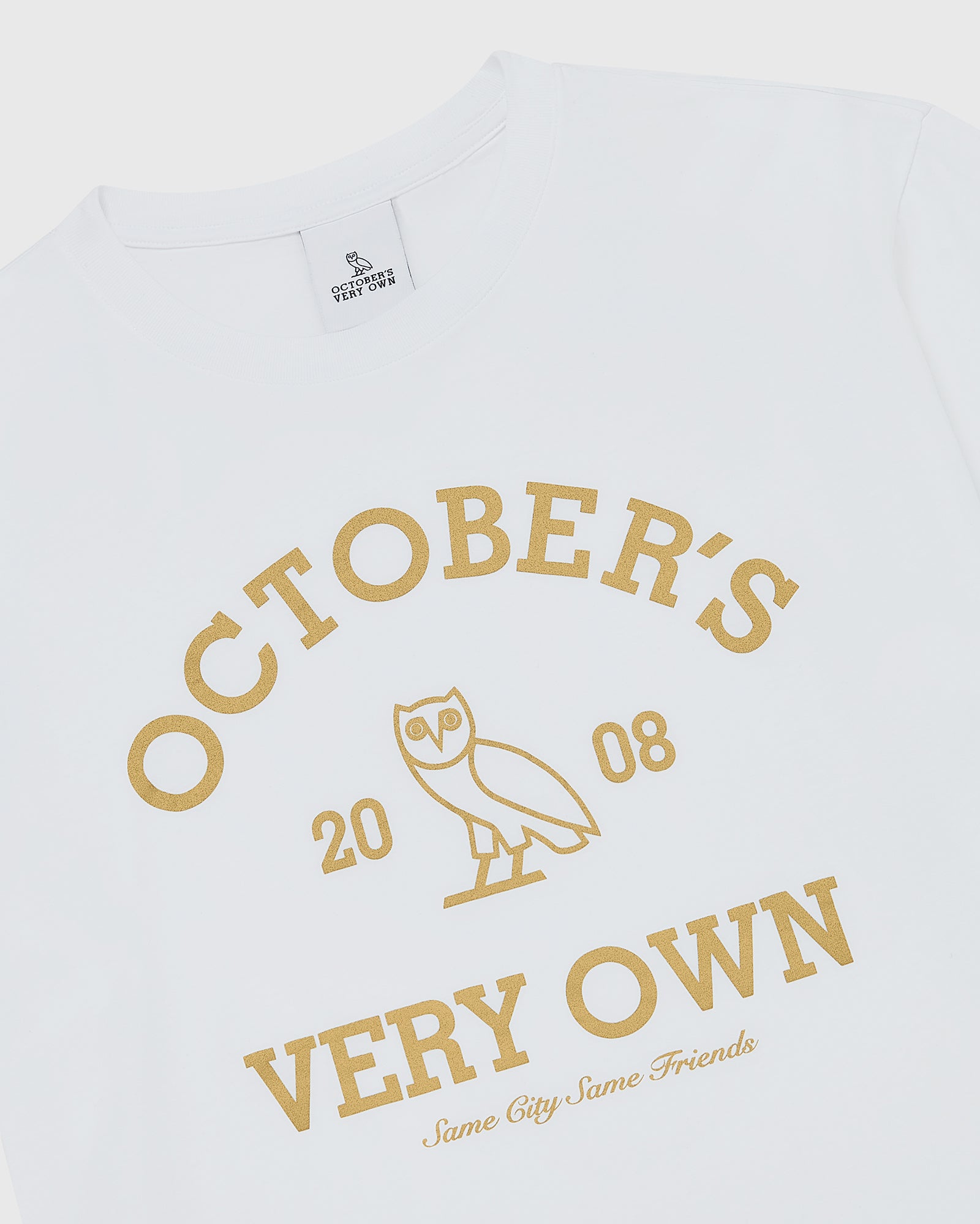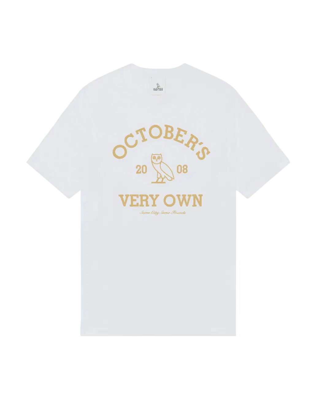 The OVO Collegiate Tee 'White' blends classic style with standout details. Featuring a crisp white base accented by striking gold OVO owl logo, this tee offers a fresh, eye-catching look. Crafted from premium materials, it promises lasting comfort and durability, making it a reliable choice for everyday wear. Elevate your wardrobe with a shirt that’s as confident and vibrant as you are.