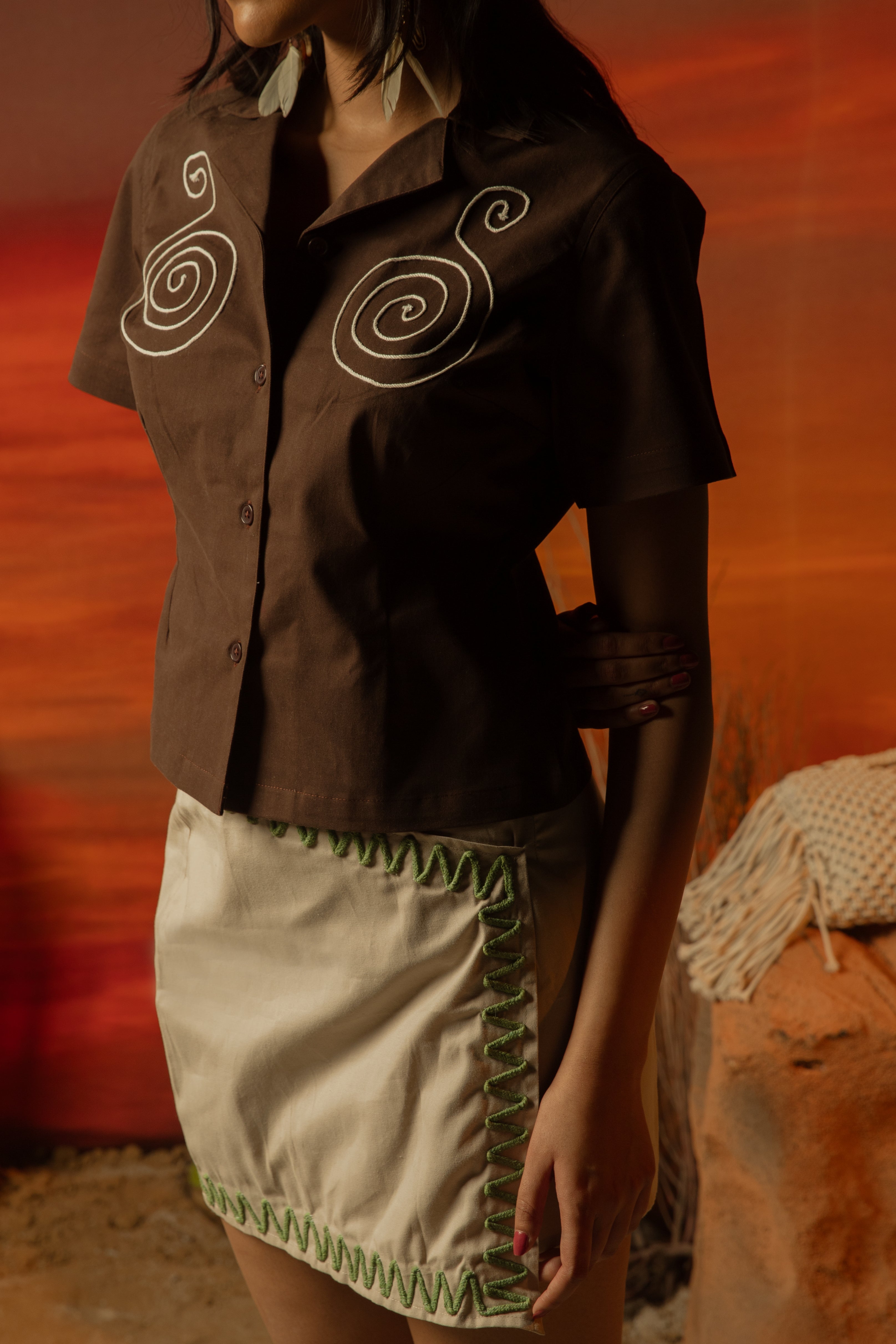 Crafted for movement and sharp detail, this asymmetrical mini skirt is made from breathable cotton twill with a clean, structured fit. A concealed side zipper keeps the finish smooth, while tonal cord work zig-zags across the front—bringing bold texture to a minimal shape.