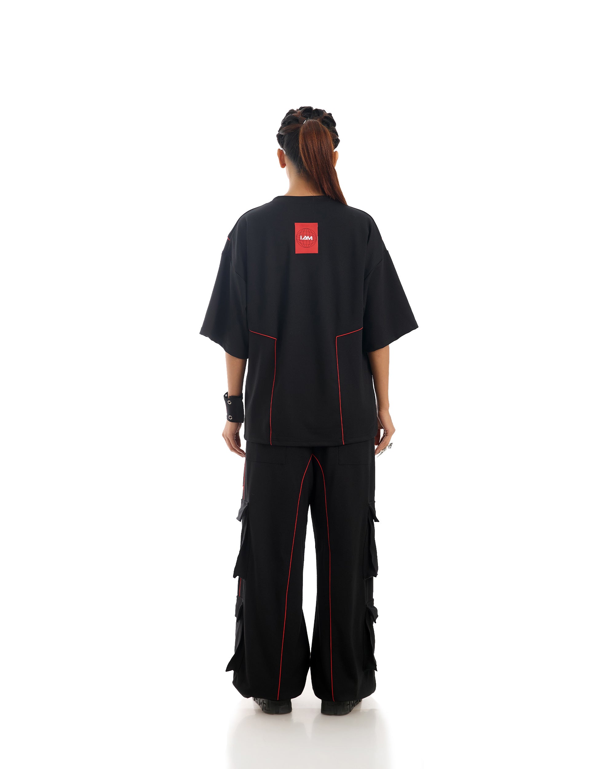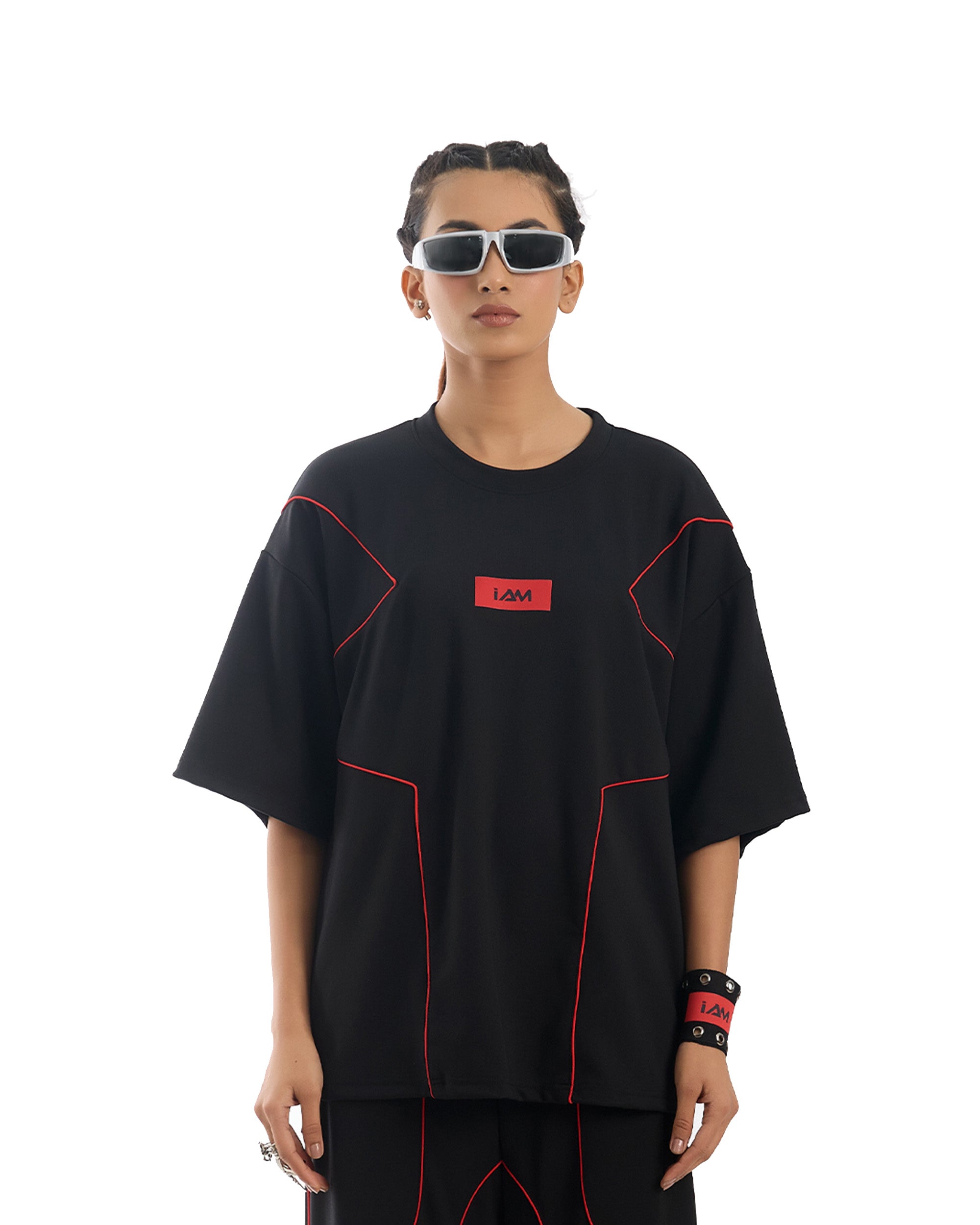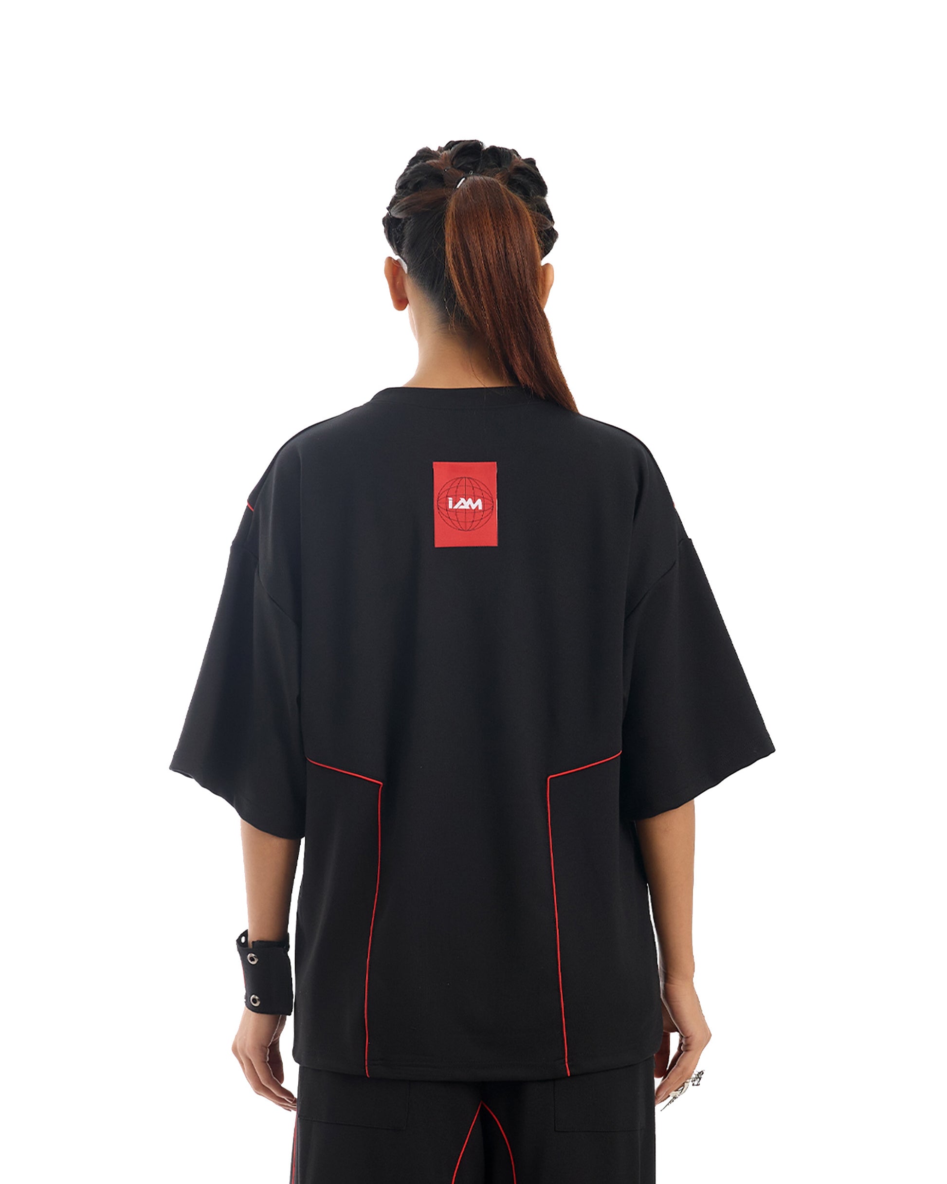 The symmetrical red piping transforms this rave-ready T-shirt into a masterpiece. Whether solo or layered, the I AM tee merges technical precision with minimalistic charm, crafting a bold narrative. For those drawn to subtle hues, this tee design is your ultimate style companion – sophistication meets statement.