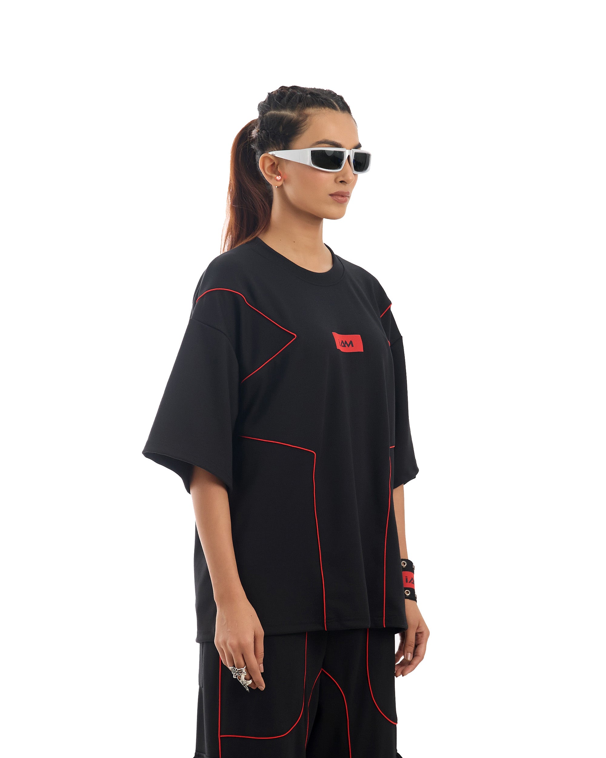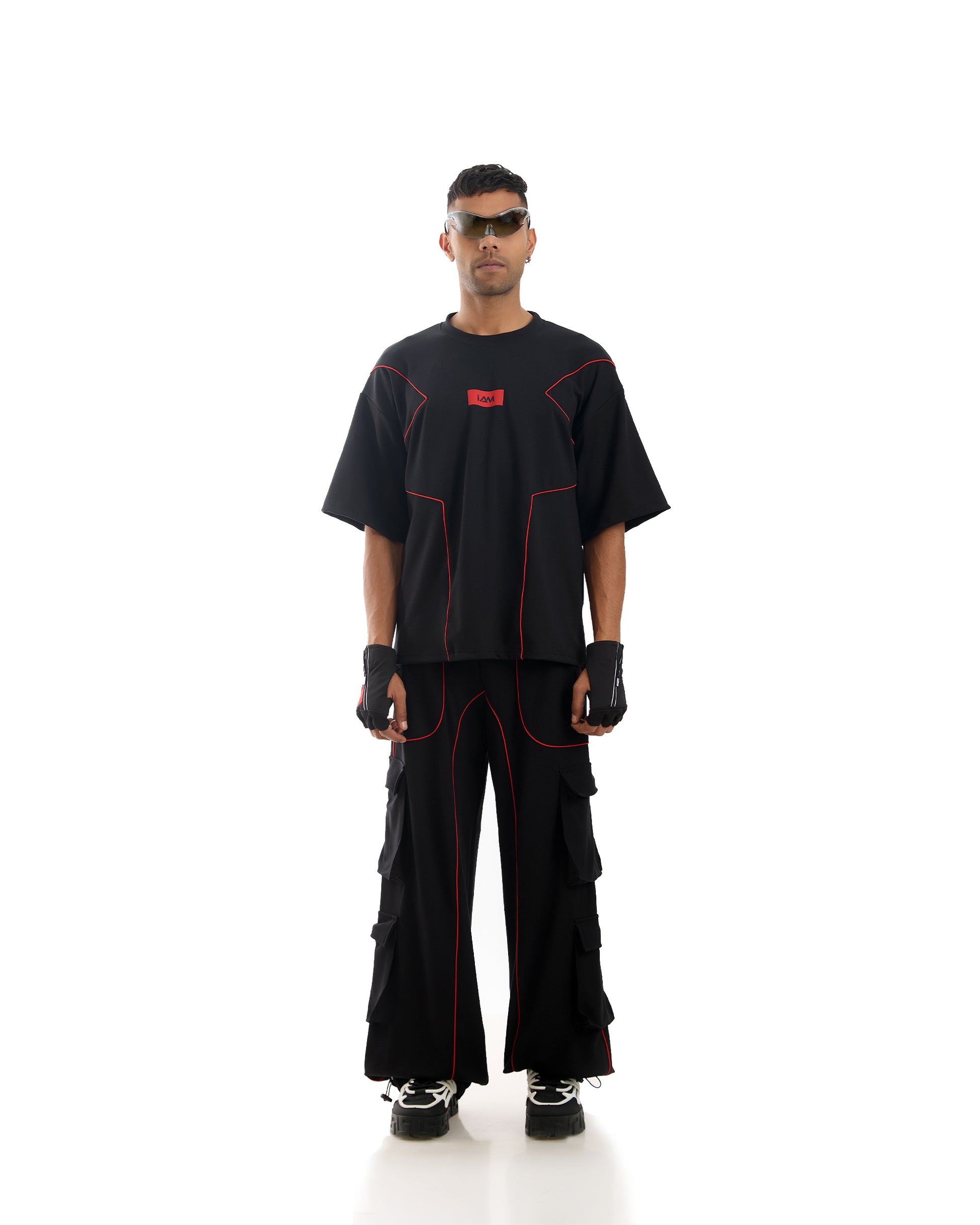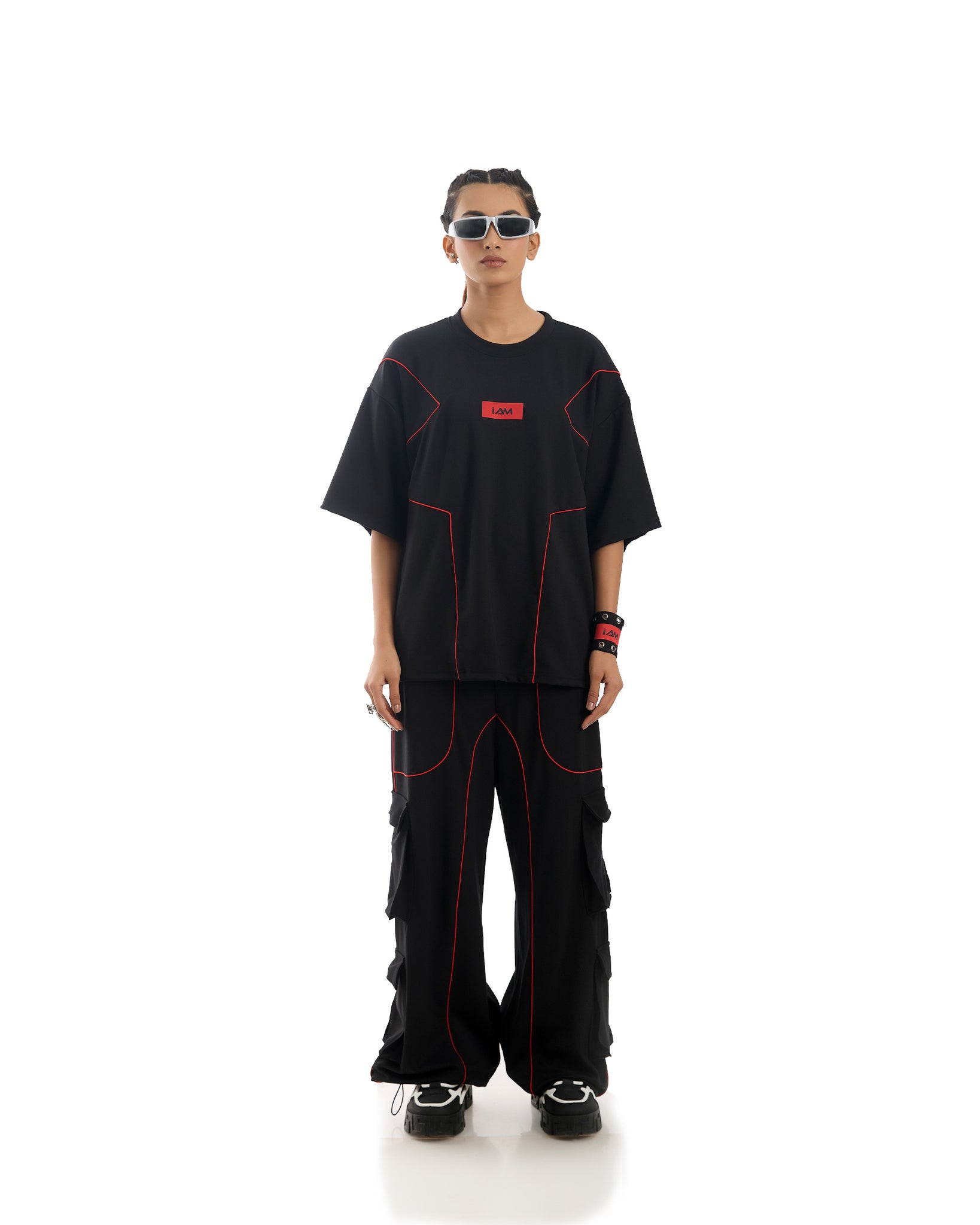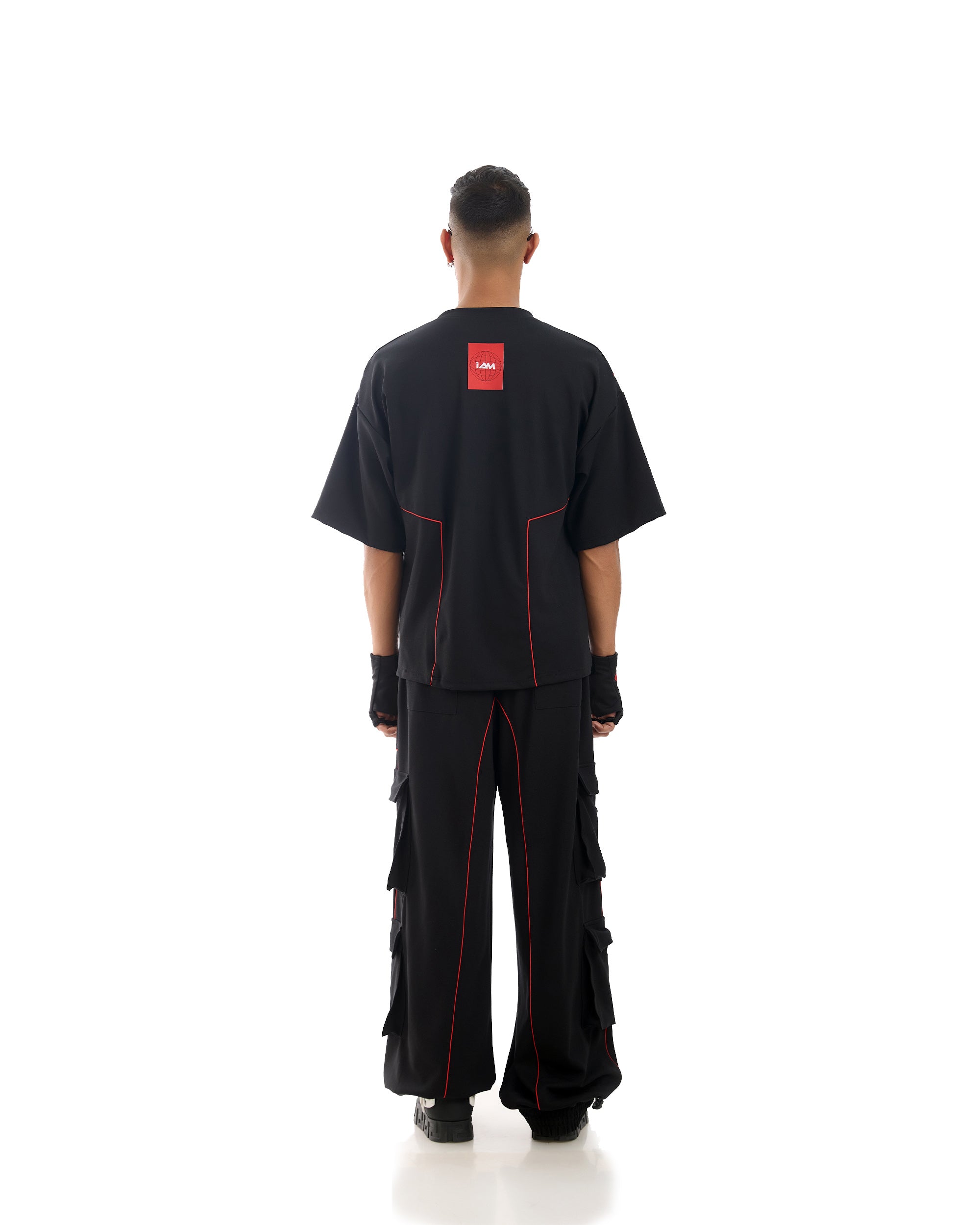 The symmetrical red piping transforms this rave-ready T-shirt into a masterpiece. Whether solo or layered, the I AM tee merges technical precision with minimalistic charm, crafting a bold narrative. For those drawn to subtle hues, this tee design is your ultimate style companion – sophistication meets statement.