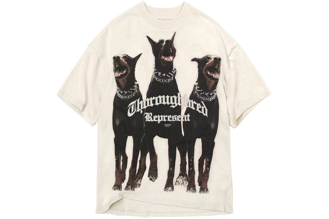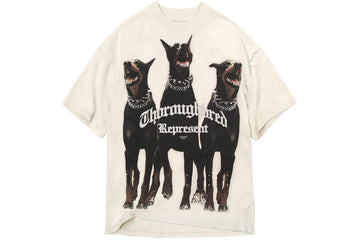 he Represent Thoroughbred Tee in Vintage White delivers timeless vintage aesthetics with a streetwear twist. Printed with a dynamic thoroughbred horse graphic, it’s crafted from heavyweight cotton with a distressed finish. The oversized fit ensures comfort while the washed-out white tone pairs effortlessly with any outfit. Designed in the UK, it captures Represent’s blend of luxury and raw culture. A clean yet powerful graphic tee for everyday style elevation.