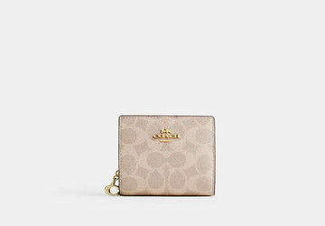 Crafted in Coach’s signature coated canvas with refined leather accents, this snap wallet delivers compact convenience without compromising style. It features multiple card slots, an ID window, and a secure snap closure that keeps your daily essentials organized. Slim enough for smaller handbags, yet spacious enough to hold your basics, this wallet is perfect for women who value elegance and efficiency. Subtle branding and quality craftsmanship make it a timeless accessory for every season.
