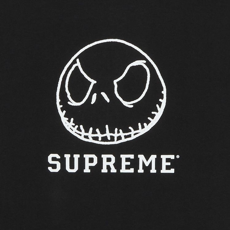 This Supreme Skeleton Tee from FW23 is printed with the character Jack Skellington from Tim Burton's 1993 film, 'The Nightmare Before Christmas.' Designed in black, the piece features the NYC brand's logo below the artwork.
