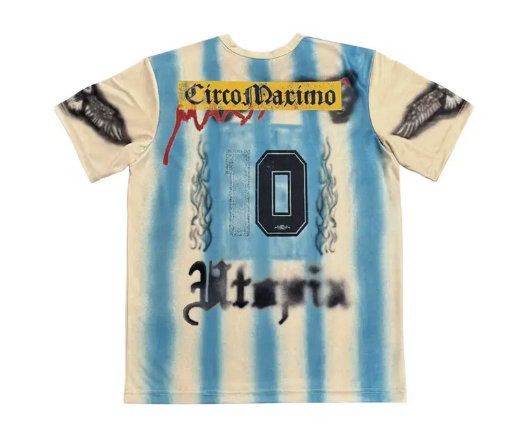 Celebrate Argentinian football with a La Flame twist in the Travis Scott Argentina Soccer Jersey. Featuring a crisp sky blue and white colorway, this jersey pays homage to Argentina’s iconic kit while infusing Travis Scott's creative flair. Lightweight, moisture-wicking material ensures all-day comfort, whether you’re on the move or styling it for the gram. The Cactus Jack logo adds authentic hype energy. Wear it layered or solo for a sporty, street-ready look that turns heads.