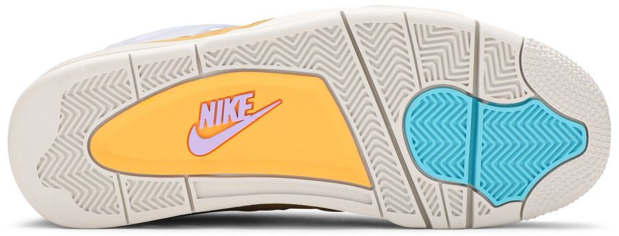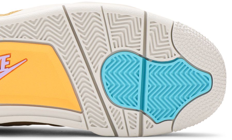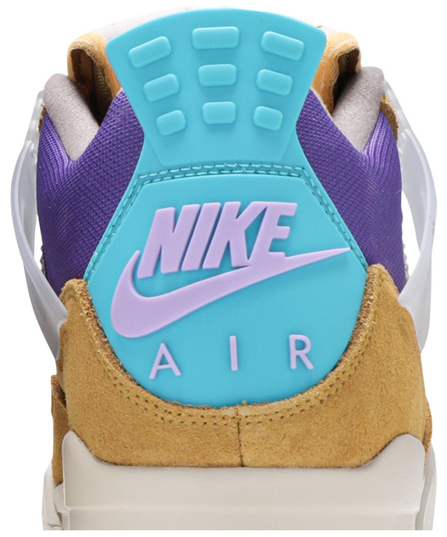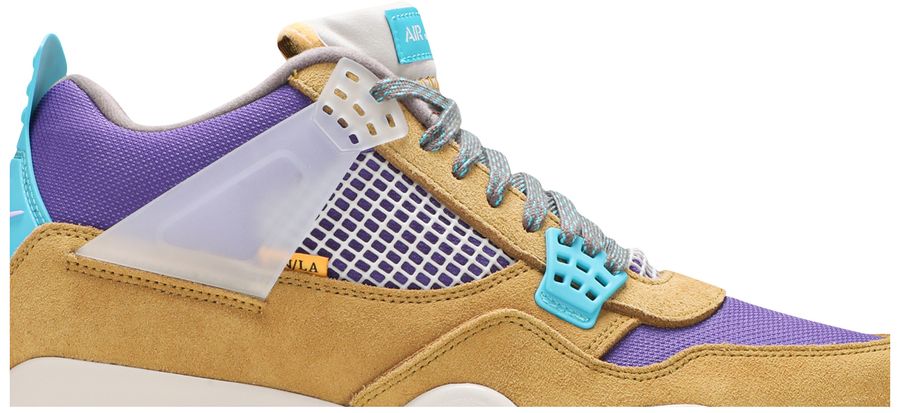 Releasing as part of the renowned retailer’s 30th anniversary festivities, the Union LA x Air Jordan 4 Retro ‘Desert Moss’ brings back the creative partners’ modified AJ4 from 2020. This pair is taken from a capsule dubbed ‘Tent and Trail,’ featuring colors and materials inspired by outdoor gear from the ‘80s and ‘90s. The mid-top carries an upper built with a blend of bright purple mesh and mustard yellow suede. Vibrant pops of turquoise land on the lower molded eyelets and heel tab, marked with Nike Air branding in a lavender hue. A stitched fold-down tongue, yellow ‘UN/LA’ tag and translucent TPU wings are carried over from the 2020 release. The sneaker is mounted on an off-white polyurethane midsole with an aqua-tinged Air-sole unit under the heel.