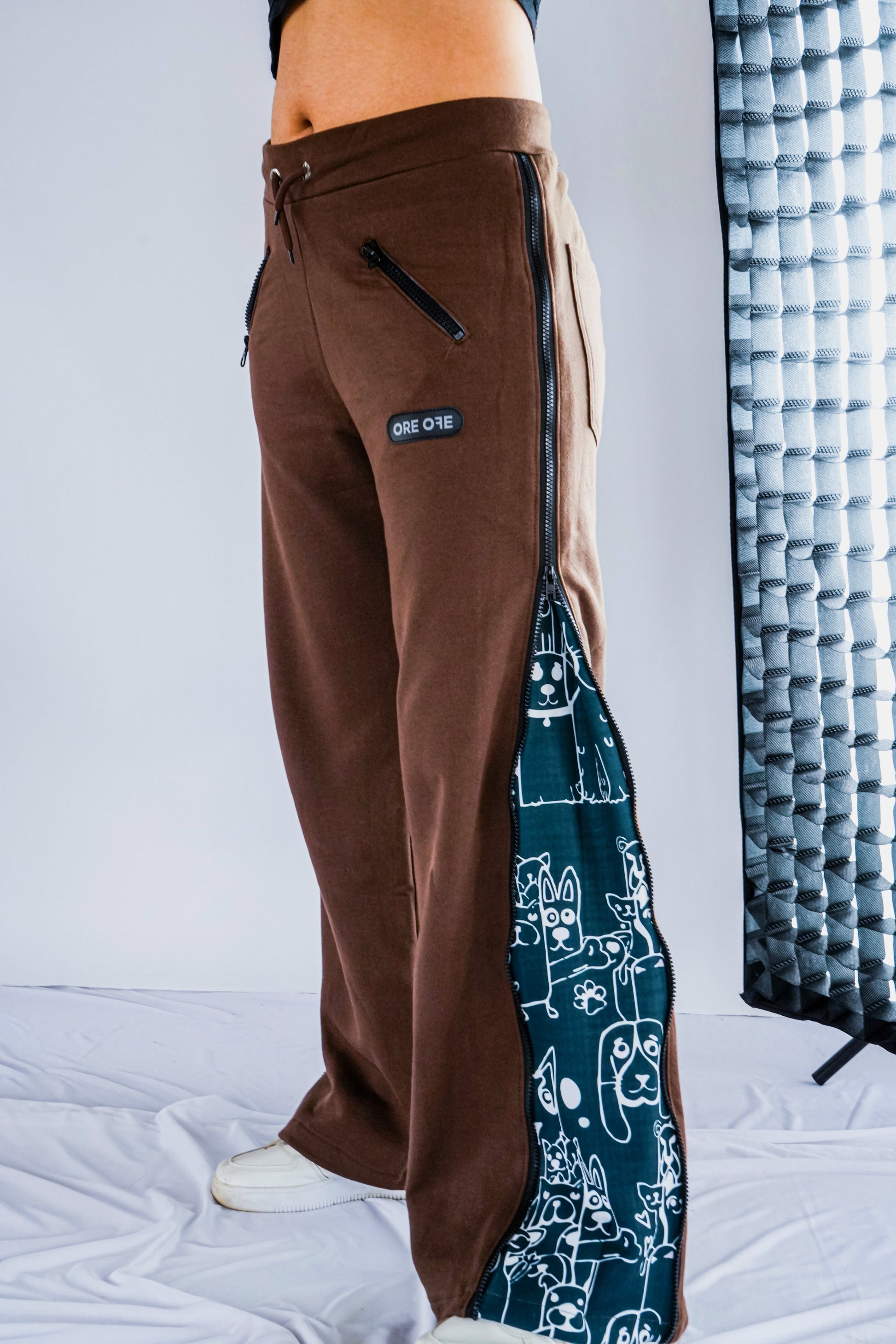 These joggers are more than just a piece of clothingâthey're a fun expression of your love for dogs! With full seam zippers that reveal bold dog-faced designs and a front zip pocket to keep your essentials safe. Functionality meets flairâbecause who says you canât have both?