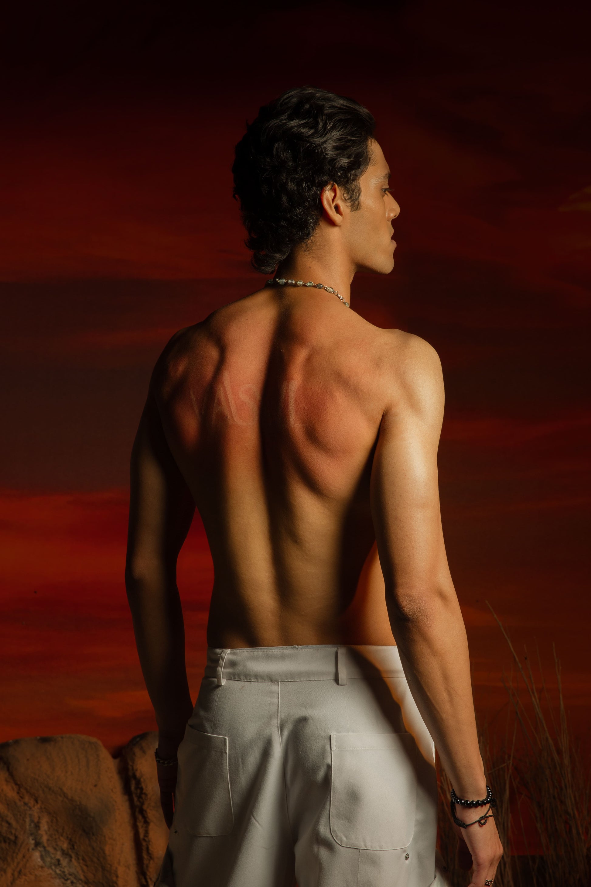 Rooted in Goa’s spirit of fluidity and self-expression, the Varia Strap Pants bring modular design to a timeless silhouette. Cut in a crisp straight fit, these white twill pants feature a detachable printed woven patch secured with snap buttons—offering a bold accent that can shift with your style. Wool straps, also removable, allow for layered, experimental styling. Whether worn minimal or statement-heavy, this piece adapts to you—crafted for those who move between moods, moments, and meaning.