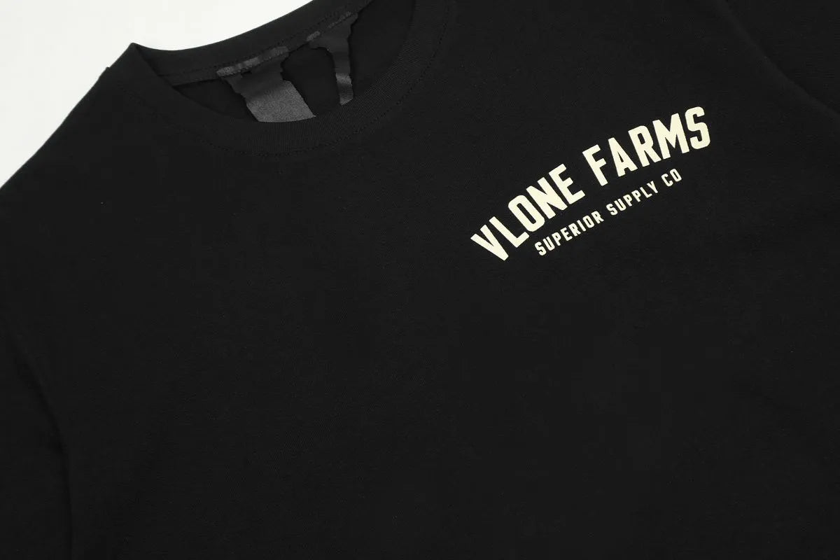 Show love for the land and the culture with the VLONE Farms x OG Farmer Tee. Featuring unique collab graphics and earthy tones, this tee stands out in the VLONE lineup. Made from breathable cotton, it offers a relaxed, wearable fit. A niche release perfect for collectors and fans of farm-to-fashion storytelling.